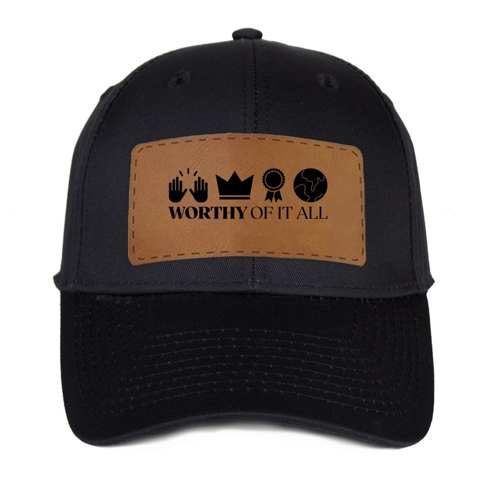 Merrimack Hat Co.™ Alden Leather patch 6-Panel Cap with WOIA "Worthy Of It ALL" print